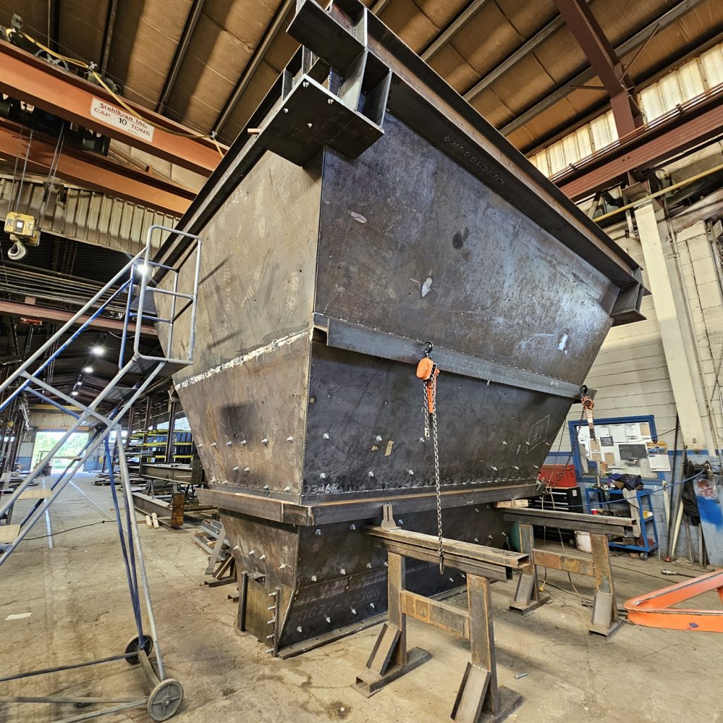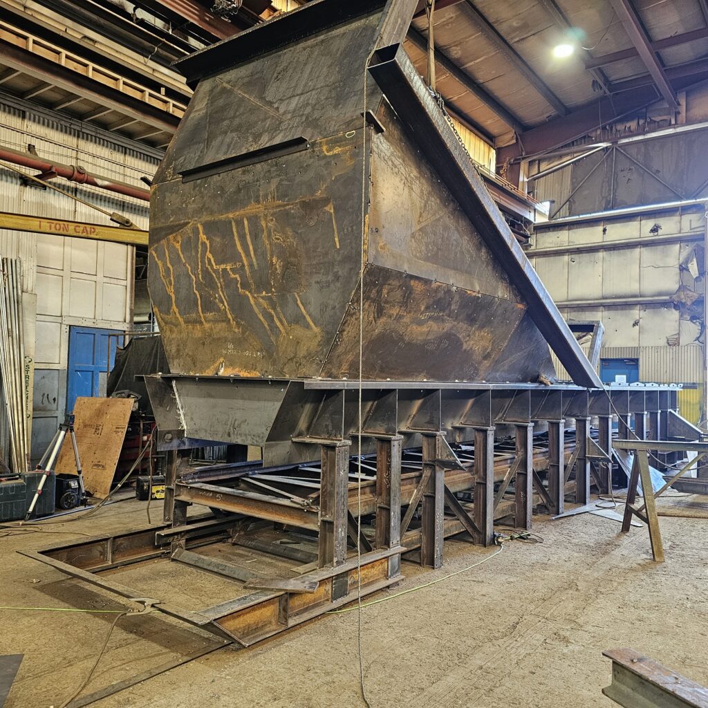 We build hoppers for a wide range of bulk material handling duties, including feed hoppers, surge hoppers, collection hoppers, transfer hoppers, receiving hoppers, and dump hoppers. We also fabricate lined and wear-resistant hoppers, as well as complete hopper assemblies with supports, skirts, chutes, and access steel where required.